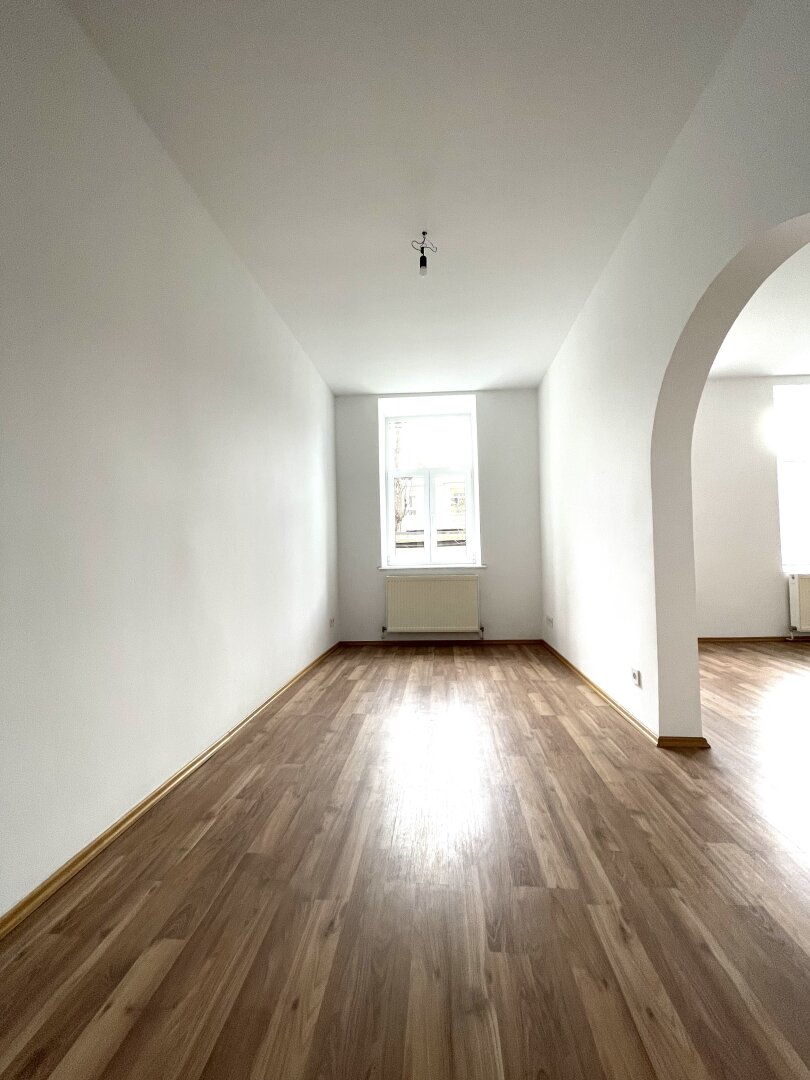 Sie betreten die Wohnung durch das helle Vorzimmer mit Fenster, von dem aus Sie direkt in die Küche gelangen. Danach betreten Sie von der Küche aus in das erste Zimmer, welches sich perfekt als Ess-/Wohnzimmer eignet. Durch einen schönen Rundbogen kommen Sie in das große Schlafzimmer, von dem aus direkt das Badezimmer mit viel Stauraumfläche zu betreten ist.