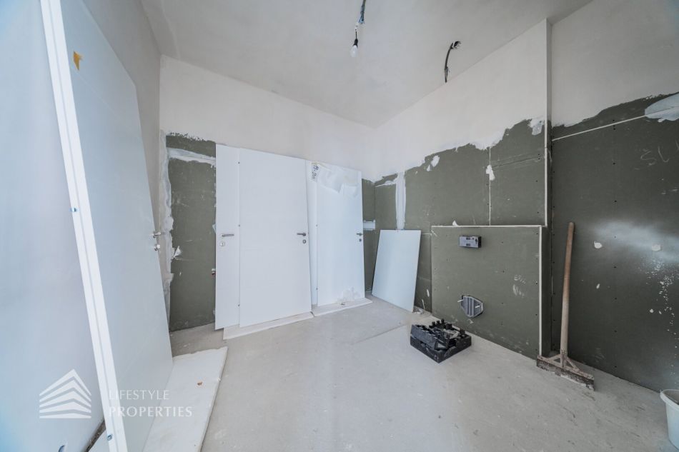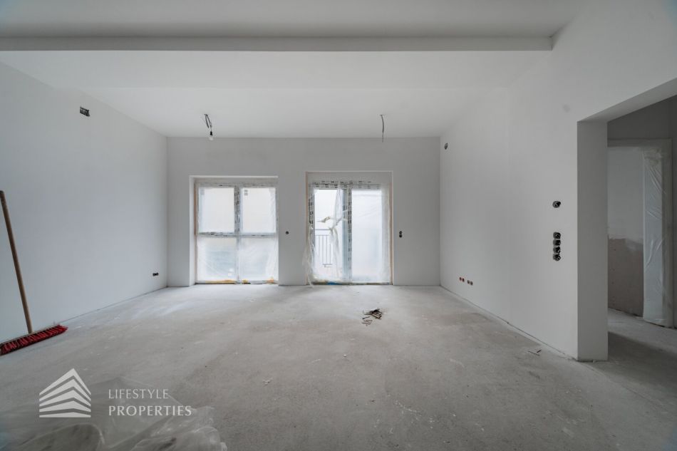 Sie betreten die Wohnung und befinden sich im Vorraum. Dieser führt Sie direkt in eine großzügige Wohnküche mit Anschlüssen für eine offene Küche und es gibt Zugang zu der schönen Terrasse. Über die Wohnküche gelangen Sie zu einem Gang, welcher die 3 Schlafzimmer miteinander verbindet und Zugang zum praktischen Abstellraum bietet. Das Badezimmer mit Dusche, WC und Doppelwaschbecken sowie mit Waschmaschinenanschluss und ein separates WC befinden sich im Vorraum.