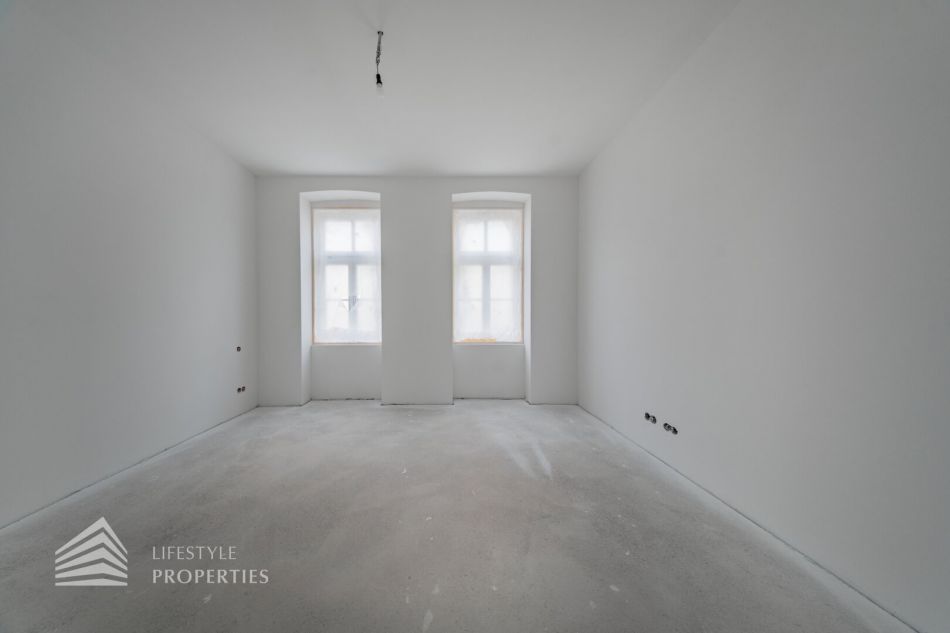Diese helle 4-Zimmer Wohnung mit ca. 104 m² befindet sich im 1. Liftstock, eines charmanten modernisierten Gründerzeithauses, in welchem 9 Wohnungen mit Wohnflächen zwischen 95 m² und 130 m² mit hochwertiger Ausstattung zum Verkauf gelangen. Die Wohnfläche gliedert sich in einen Vorraum, eine Wohnküche, drei Zimmer, ein Badezimmer, einen Abstellraum und eine separate Toilette. Zusätzlich dazu bietet Ihnen das Objekt eine ca. 17 m² große Terrasse. Alle Wohnräume sind mit hochwertigem Eichenparkett ausgestattet, während das Badezimmer mit zeitlos eleganten Fliesen versehen ist. In der gesamten Wohnung sorgt eine Fußbodenheizung für angenehmen Komfort.