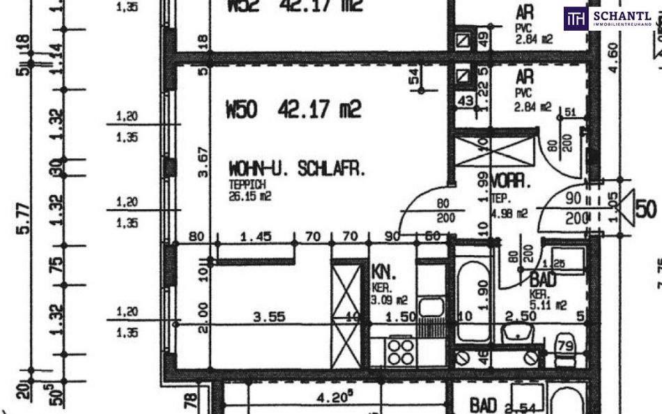 Wohnung 1 im 1.Stock / befristet bis 10/2027: ca. 42,17m² / Nettomiete: ca. € 625,36.- netto