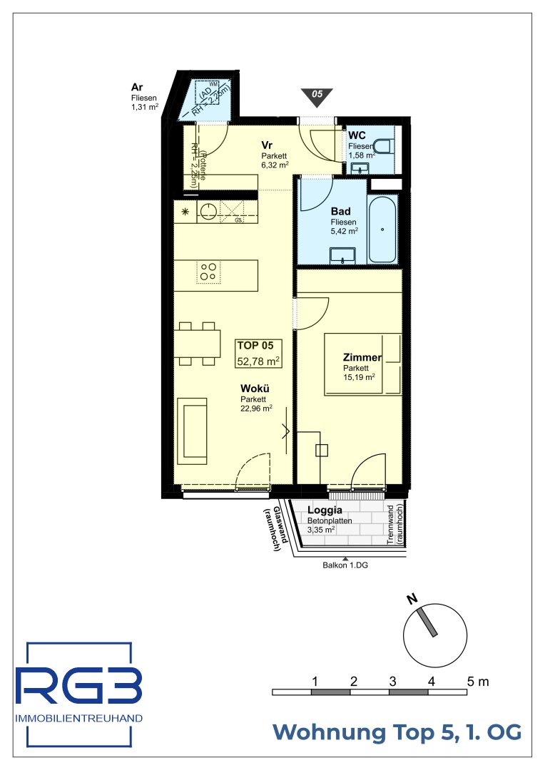 Diese Top Immobilie befindet sich in der 1. Etage und hat eine Wohnfläche von ca. 52,78 m². Sie hat einen Abstellraum und einen Kellerraum, der mit dem Lift erreichbar ist.Ein Garagenplatz ist optional zu haben. Die gesamte Wohnanlage ist auf einem Baurechtsgrundstück gebaut worden, den Bauzins dafür haben wir in der Kostenaufstellung unter Sonstiges angeführt.