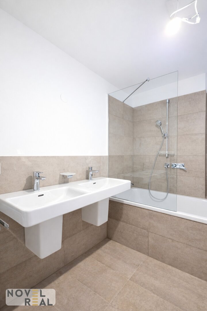 Das Badezimmer überzeugt mit hochwertigen Sanitäranlagen und modernem Design, ergänzt durch ein separates WC für zusätzlichen Komfort. Diese Dachgeschoßwohnungen vereinen Wiener Tradition mit zeitgemäßem Luxus und schaffen ein Zuhause, das gleichermaßen repräsentativ und behaglich ist.