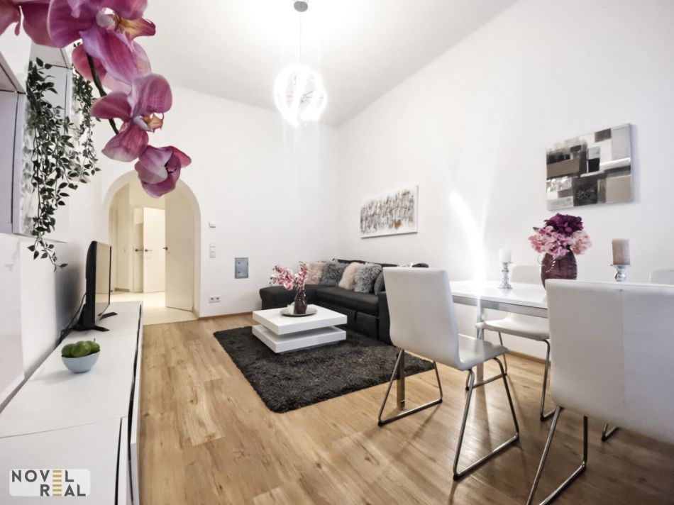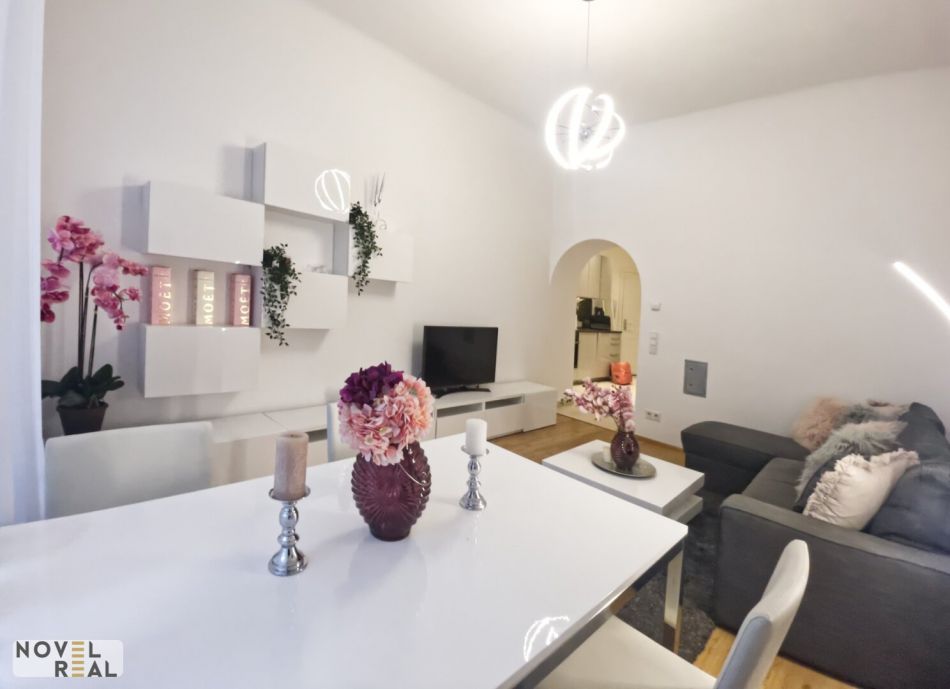 Aber nicht nur die Lage, auch die Ausstattung der Wohnung wird Sie begeistern. Sie ist hochwertig saniert, begeistert mit moderner, zeitloser Küche, Badezimmer mit Wanne, Duschabtrennung und Waschmaschine, Schlafzimmer mit Doppelbett und großem Schiebetürschrank, Wohnzimmer mit Couch, Couchtisch, Wandverbau mit Smart TV, Esstisch mit Sesseln. Selbst Designer-Lampen und Vorhänge gibt es.