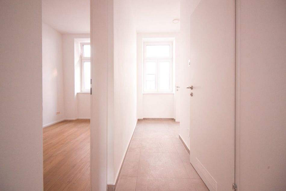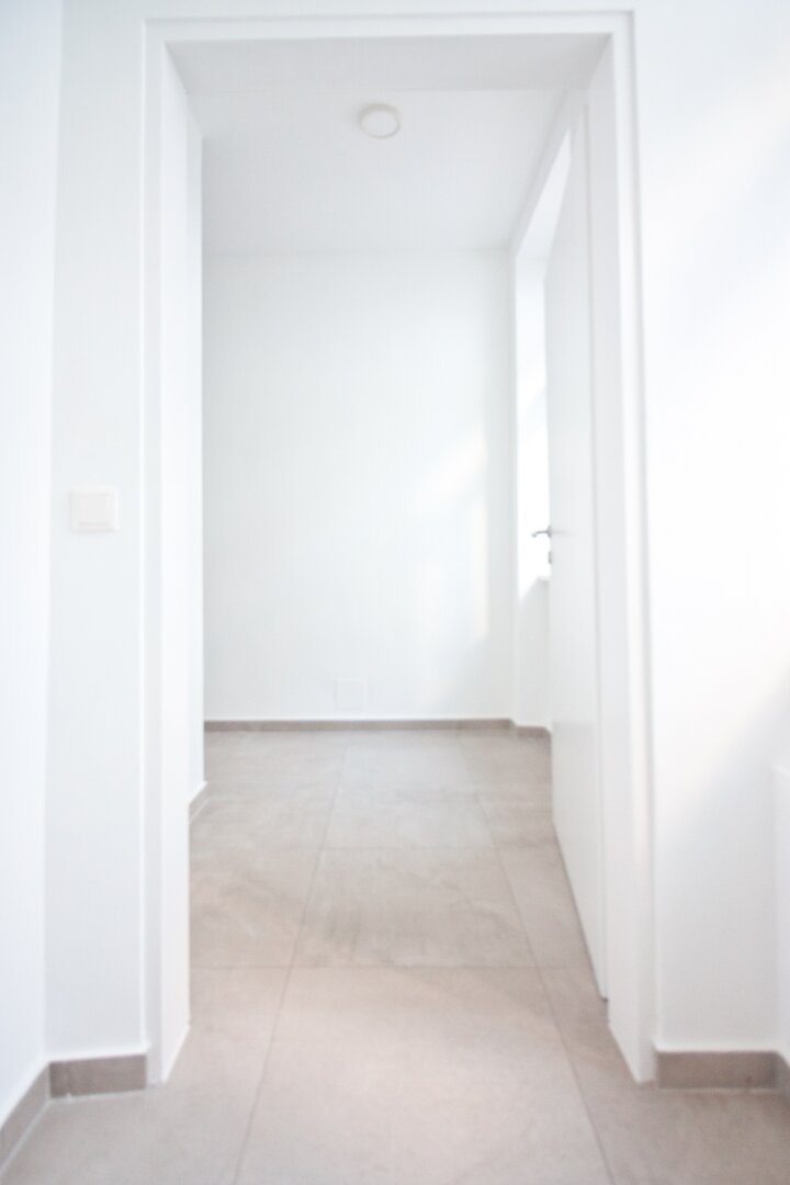 Die Wohnung wird über einen großzügigen Vorraum mit anschließendem Gang betreten, von dem aus alle Räume zentral begehbar sind. Linker Hand befindet sich das Badezimmer mit Waschtisch, Dusche und WC. Rechter Hand liegt das ca. 11 m² große Schlafzimmer.