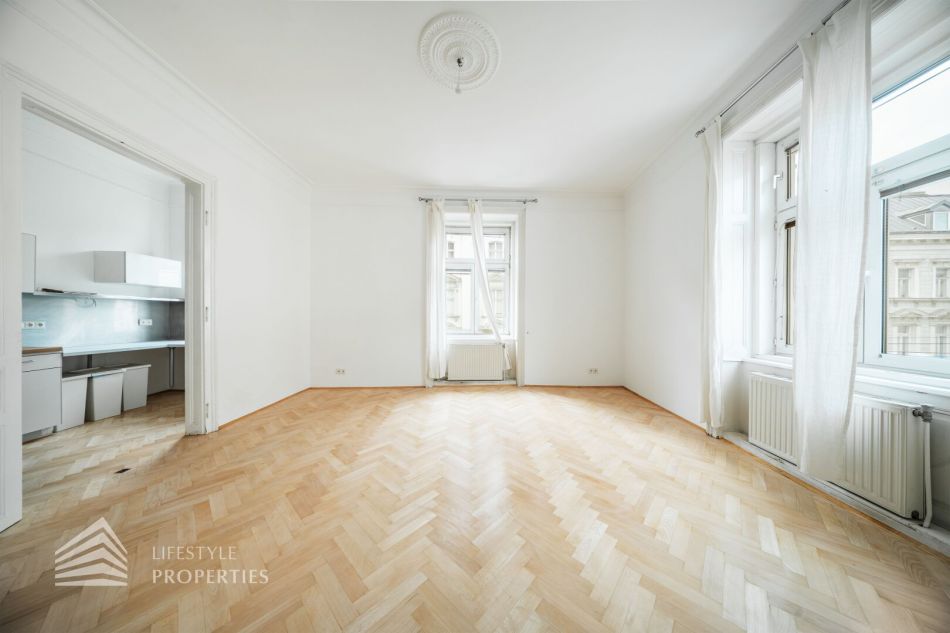 Die ca. 92 m² große Wohnung befindet sich im 1. Stock eines gepflegten Gründerzeithauses, das 2024 umfassend saniert wurde (neues Dach, neue Fassade, neu gestalteter Eingangsbereich).
