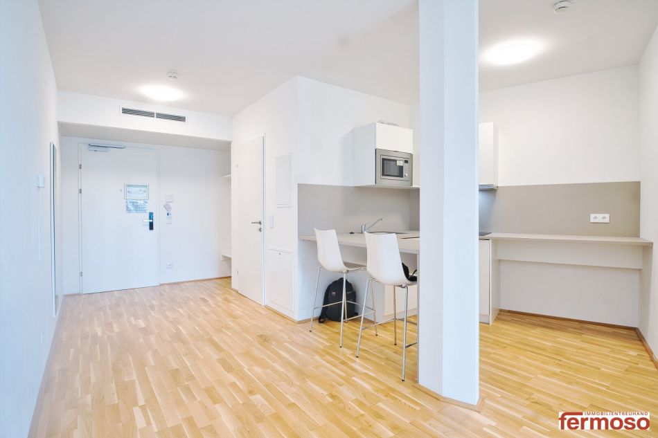 Close to the "Böhmischer Prater", our apartment building offers 204 fully furnished apartments available for short-term rental (2–12 months).