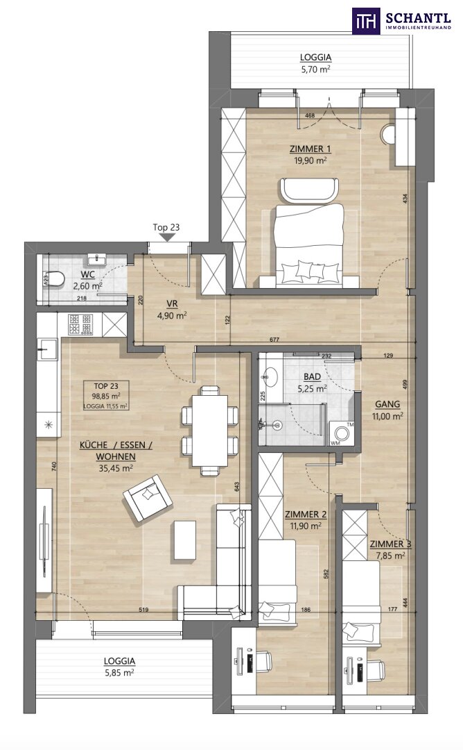 Top 23: Nordwestseitig ausgerichtete 4-Zimmer-Wohnung mit 6m² großen Loggia!