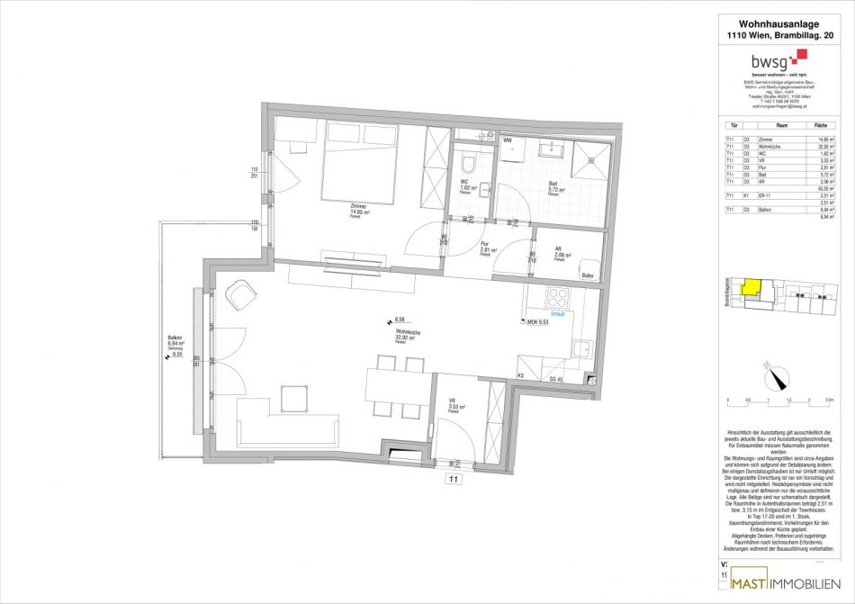 Die Wohnung befindet sich im 3. Liftstock und verfügt über 63,50 m² Wohnfläche + einen 6,94 m² großen Balkon.
