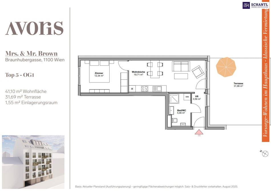 Mrs. Brown steht für Stabilität - Moderne Vorsorgewohnungen, die Menschen langfristig ein Zuhause bieten. Mr. Brown bringt Flexibilität ins Spiel mit servicierten Apartments. Ein starkes Doppel, das klassische Vermietung und temporäres Wohnen vereint!