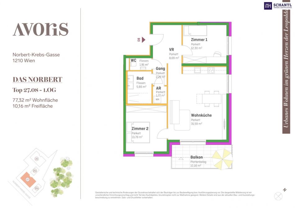 Wohnfläche: ca. 77,32m² + Balkon: ca. 10,16m² + Kellerabteil