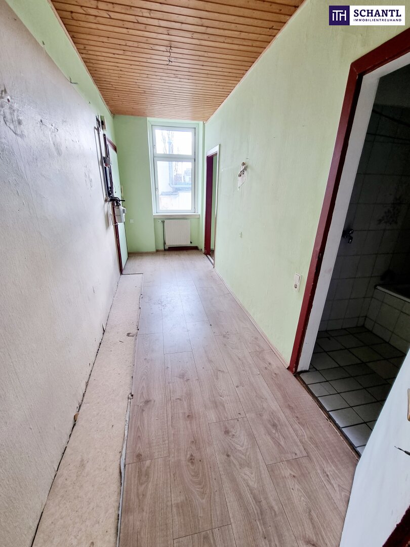 Ihre neue Wohnung ist aktuell sanierungsbedürftig und bietet Ihnen die Chance, Ihre Wünsche umzusetzen! Sie teilt sich in einen Vorraum mit angeschlossenem Küchenbereich (andere Gestaltung natürlich möglich), ein Badzimmer mit WC, ein kleines und hofseitiges Schlafzimmer (hier war früher die Küche), eine geräumiges Wohn-Esszimmer sowie ein weiteres Schlafzimmer.