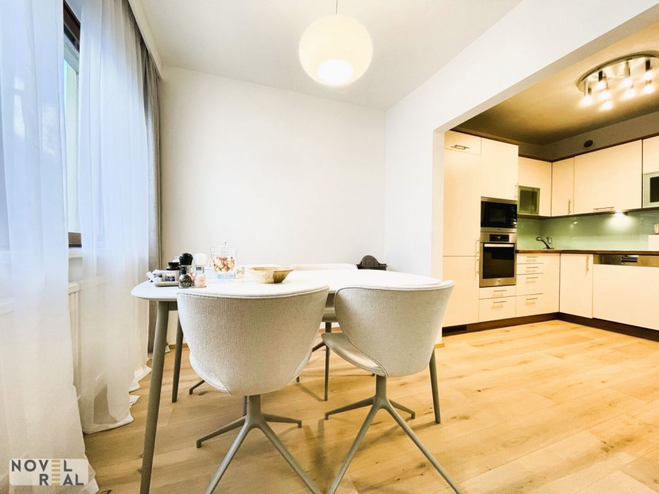 Der absolute Höhepunkt der Wohnung ist die große Wohnküche, die zum Herzstück der Wohnung wird. Die hochwertige Einrichtung von BO Concept verleiht der Wohnung ein modernes und stylisches Ambiente. Die Küche ist zudem mit
