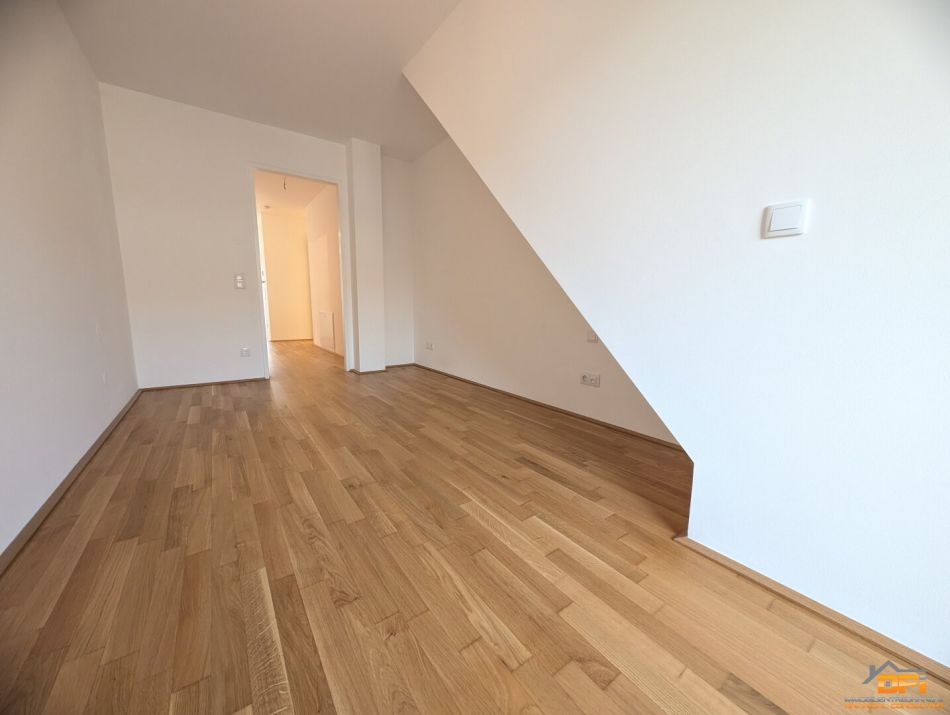 Es handelt sich um eine moderne Neubauwohnung; die Sanitärräumlichkeiten sind verfliest; der Rest ist mit Parkettboden ausgestattet