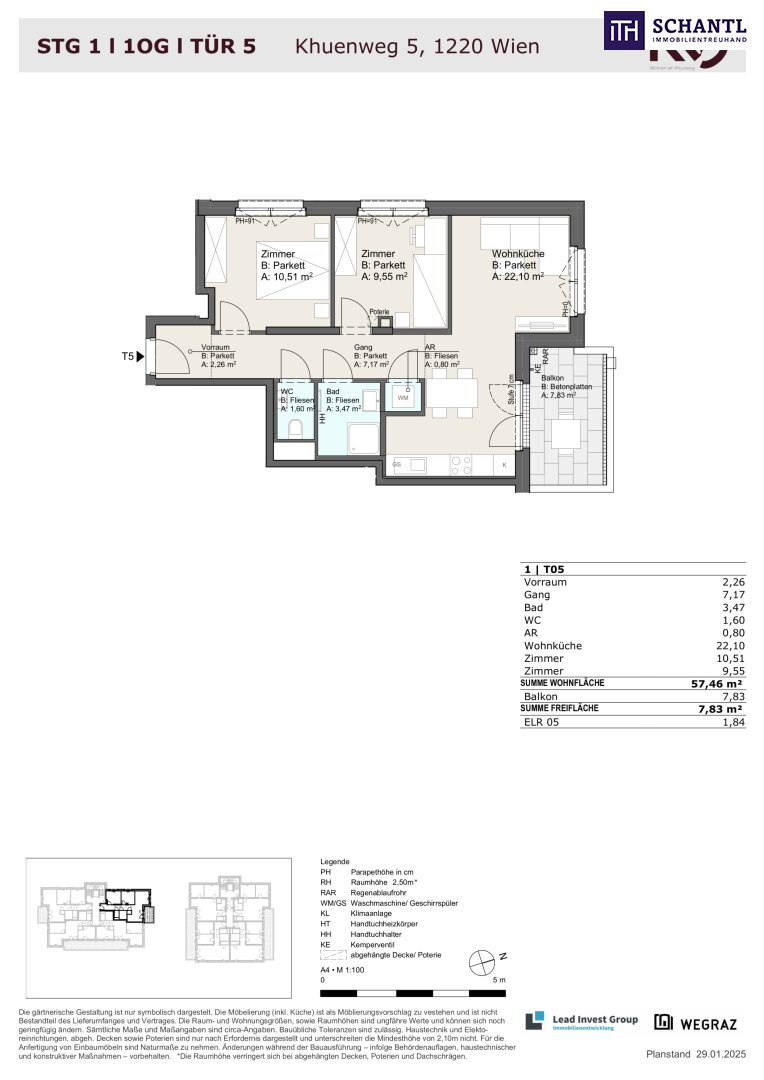 Wohnfläche: ca. 57,46m² + Balkon: ca. 7,83m² + Kellerabteil: ca. 1,84m²