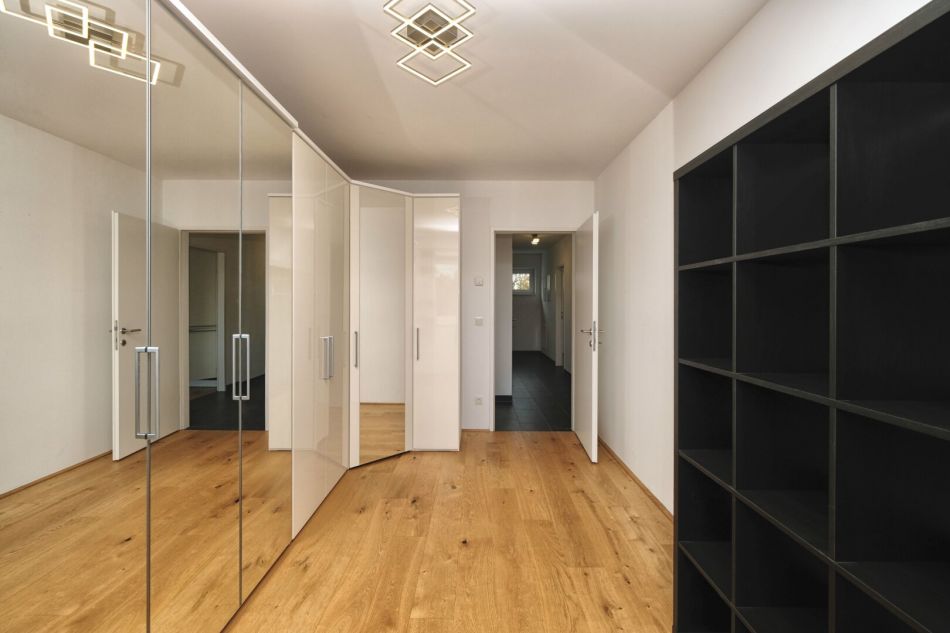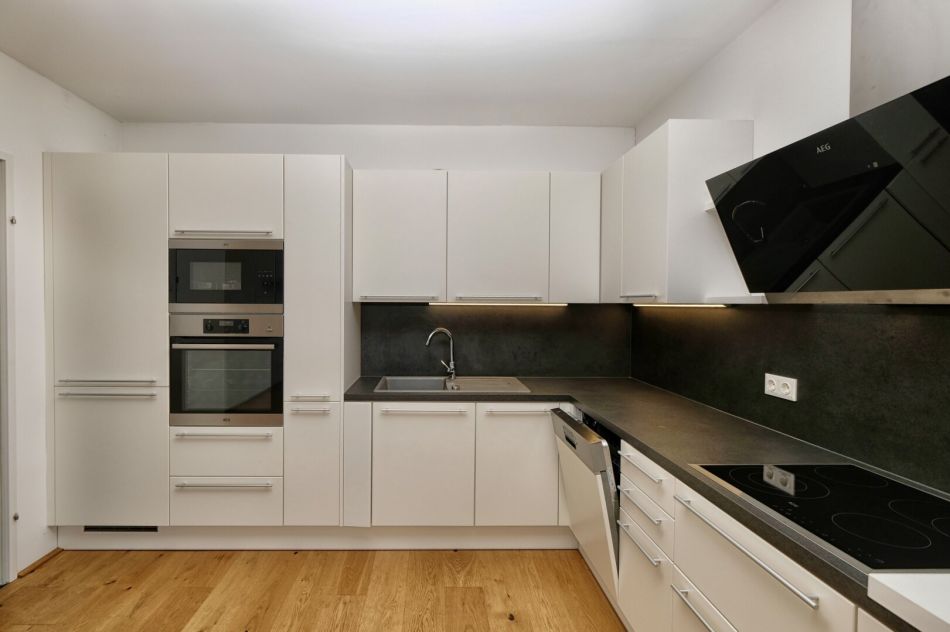 Das Herzstück der Wohnung bildet die große, offene Wohnküche, die mit ihrer modernen Einbauküche samt sämtlicher Geräte keine Wünsche offenlässt. Von hier aus gelangt man direkt auf beide Terrassen – ideal für gemütliche Abende oder gesellige Stunden mit Freunden.