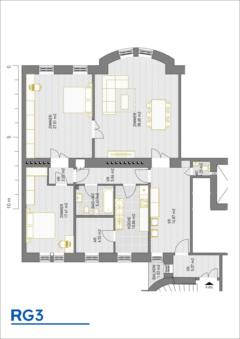 Repräsentatives Büro/Praxis in 1010 Wien mit 3 Zimmer & Balkon