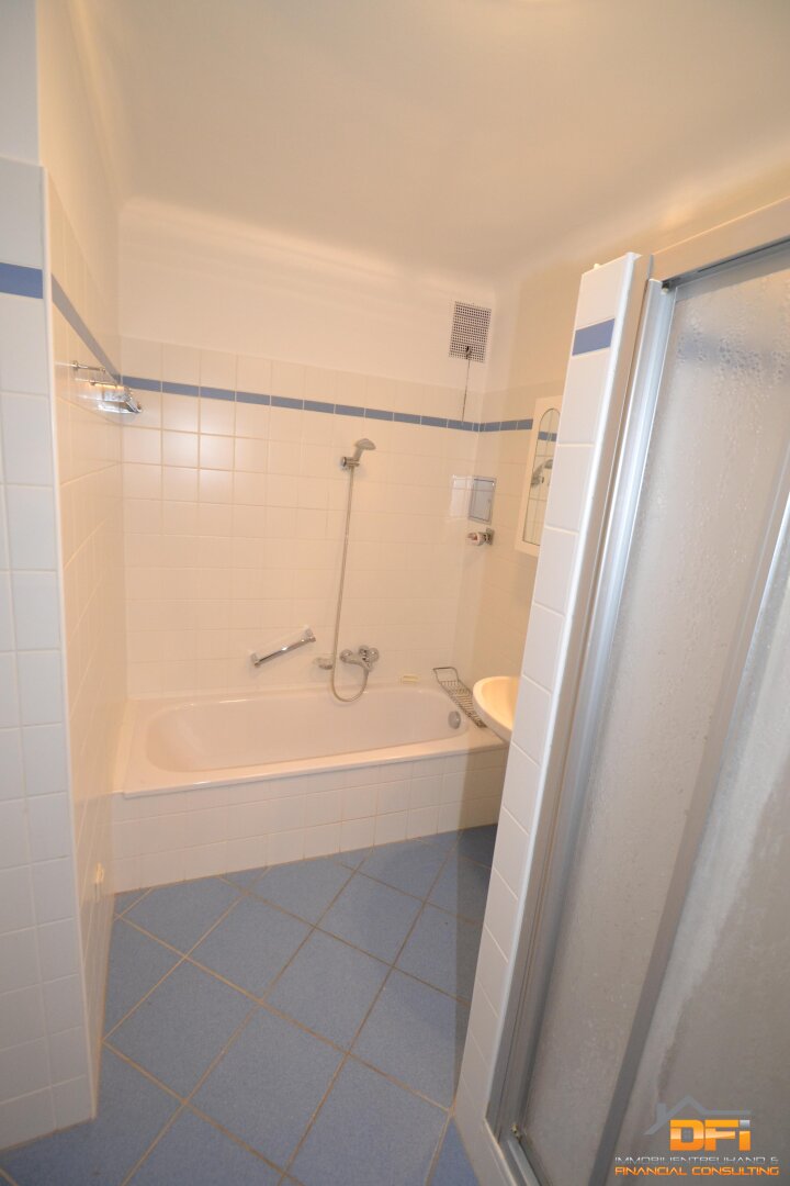 Bad: Das freundlich verflieste Badezimmer ist mit Badewanne UND Dusche sowie einem Handwaschbecken ausgestattet.