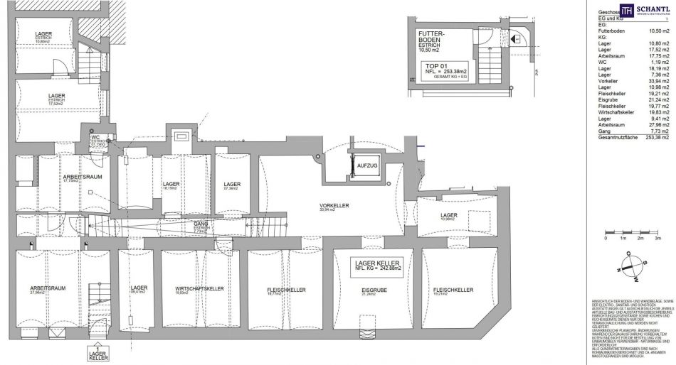 + TOP 1: ca. 253,38m² (davon EG 10,50m² + ST 242,88m²)