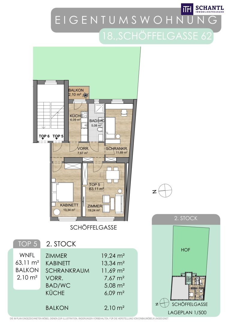 + TOP 5: 2.Stock / Wohnfläche ca. 63,11m² / Balkon ca. 2,10m² / Eigengarten ca. 107,4m² / € 549.000.-