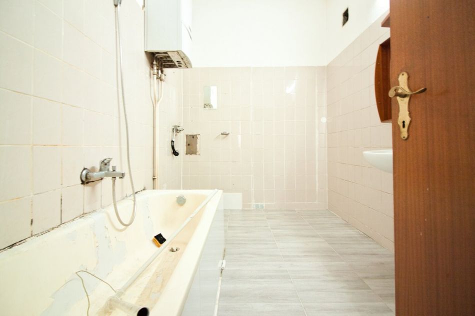 Die Wohnung befindet sich im 1. Stock ohne Lift. Durch einen kleinen Vorraum mit Fenster in den Innenhof gelangt man in die Küche. Rechterhand befindet sich das großzügige Badezimmer mit Badewanne und gegenüber ein separates WC mit Fenster. Weiter geht es in das Kabinett, welches in den ruhigen Innenhof orientiert ist.