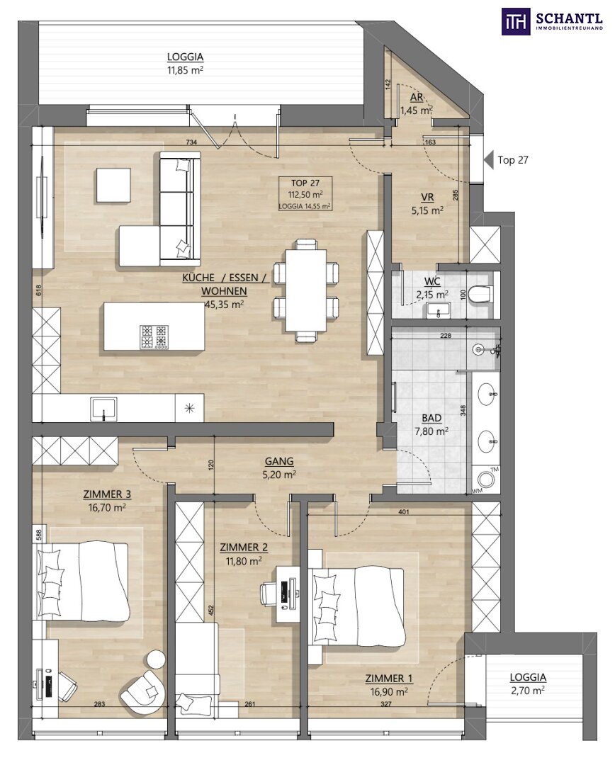 Top 27: 112m² Nord-Südseitige ausgerichtete 4-Zimmer-Wohnung mit 2 feinen Loggien!