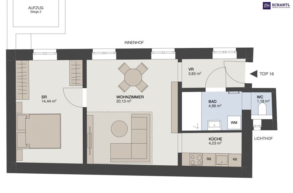TOP 16 - Ruhige 2-Zimmer-Wohnung im Innenhof!