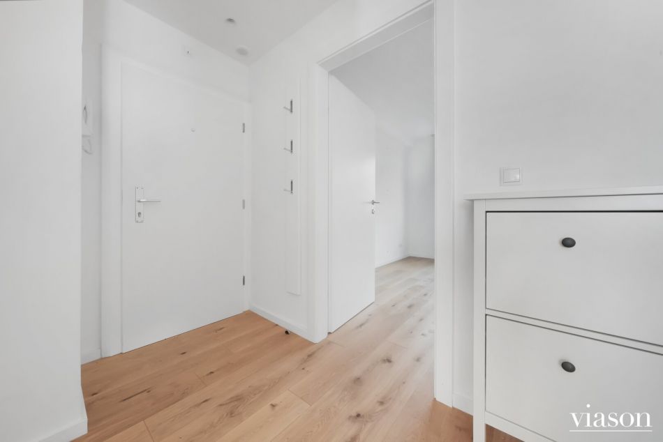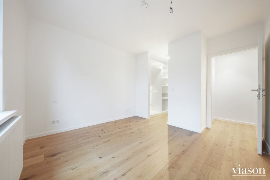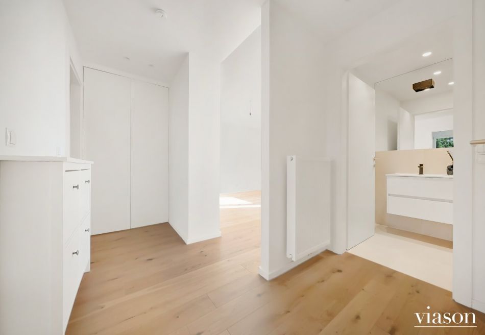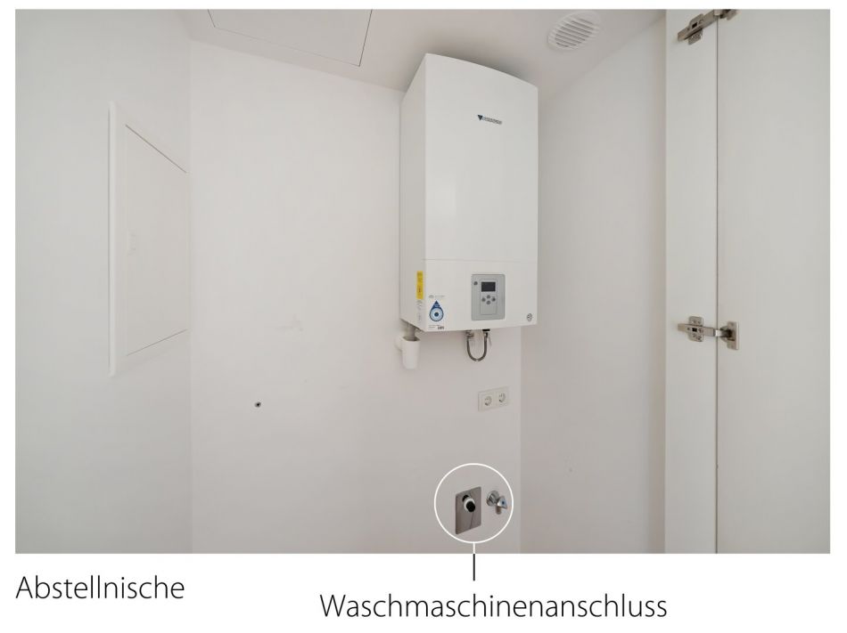 sowie ein praktischer Vorraum mit zusätzlicher verschließbarer Abstellnische samt Gastherme und Waschmaschinenanschluss.