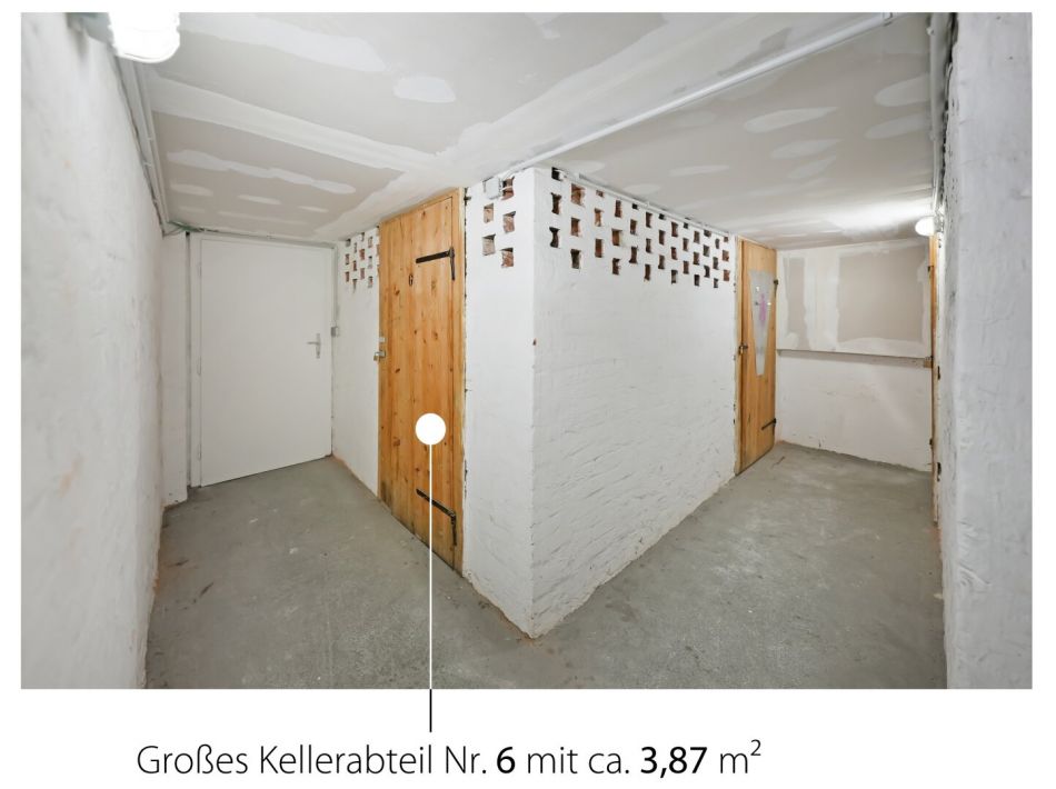 Zur Wohnung gehört ein großes Kellerabteil (ca. 3,87 m²) zur Nutzung, außerdem steht den Bewohnern ein gepflegter Gemeinschaftsgarten zur Verfügung.