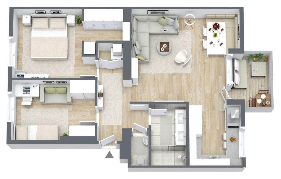 Idealer Grundriss mit 3 Zimmern