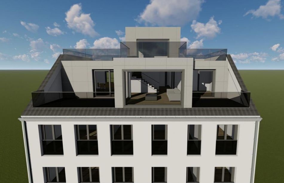 Hinweis zu Visualisierungen: Alle gezeigten Renderings dienen ausschließlich als Beispieldarstellung des eingereichten Konzepts. Die finale Gestaltung und Ausführung wird erst nach Erhalt der Baugenehmigung durch die Baupolizei festgelegt. Für verbindliche Visualisierungen und Details kontaktieren Sie bitte die zuständige Baubehörde.