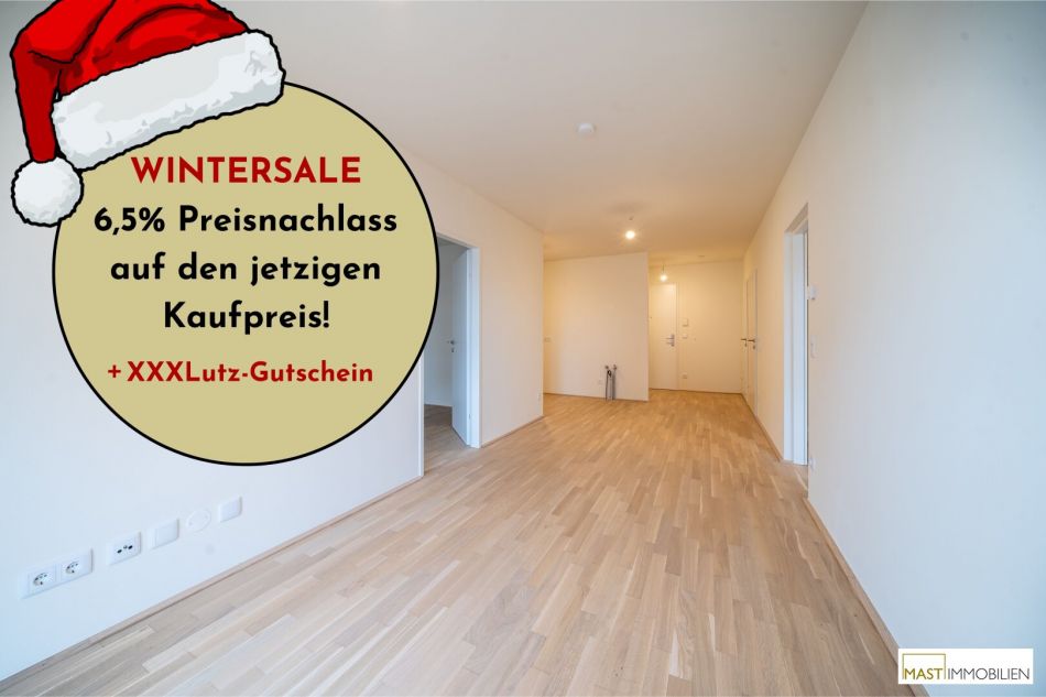 In der kalten Jahreszeit lassen wir die Preise schmelzen: Beim Kauf einer Eigentumswohnung in einem unserer Objekte in der Berresgasse ersparst du dir bis 31.3.2026 die Nebenkosten* und bekommst so jede Wohnung um 6,5% günstiger.