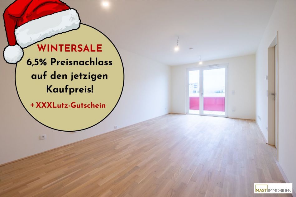 In der kalten Jahreszeit lassen wir die Preise schmelzen: Beim Kauf einer Eigentumswohnung in einem unserer Objekte in der Berresgasse ersparst du dir bis 31.3.2026 die Nebenkosten* und bekommst so jede Wohnung um 6,5% günstiger.