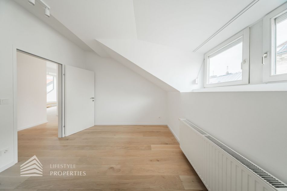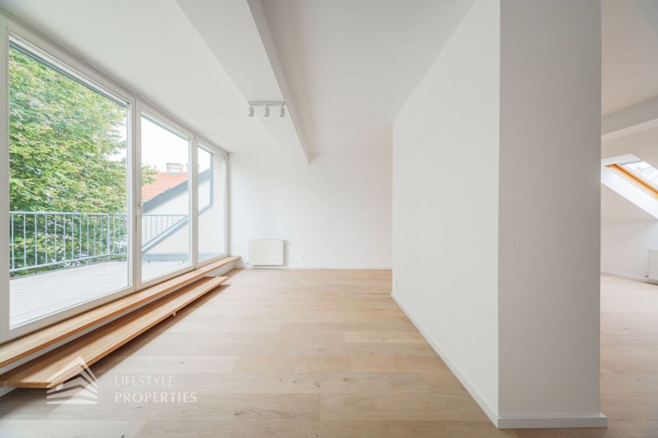 Sie befindet sich im DG eines in der Jahrhundertwende erbauten Altbaus und verfügt über eine Wohnfläche von ca. 96 m². Diese gliedert sich in einen Vorraum, 3 Zimmer, eine Küche, ein Bad und ein separates WC. Zusätzlich zur Wohnfläche überzeugt die Wohnung mit einer ca. 13 m² großen Terrasse. Diese Wohnung wurde mit viel Liebe zum Detail und hochwertigen Materialien umfassend saniert. Das Badezimmer wurde mit modernen Sanitärobjekten ausgestattet und bietet sowohl funktionale als auch ästhetische Highlights. Der Parkettboden in hochwertiger Ausführung sorgt für eine elegante und warme Atmosphäre in allen Wohnräumen. Auch die Terrasse wurde mit einem neuen, exklusiven Terrassenbelag versehen.