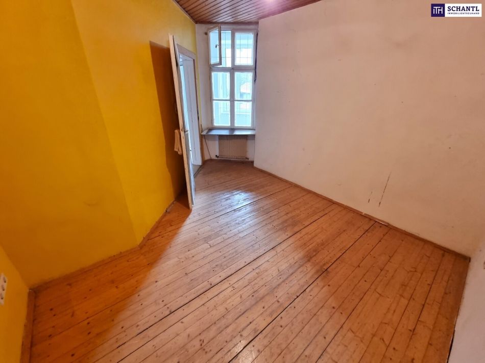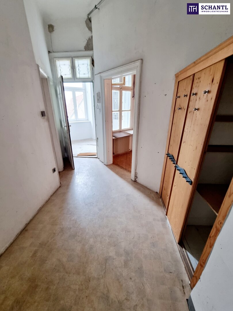 Ihre neue Wohnung ist aktuell sanierungsbedürftig und bietet Ihnen die Chance, Ihre Wünsche umzusetzen! Sie teilt sich in einen großen Vorraumbereiche, ein Badezimmer, ein WC, eine separate Küche mit Fenster und Platz für einen kleinen Esstisch, ein zentrales und geräumiges Wohn-Esszimmer, sowie 2 getrennt begehbare Schlafzimmer.
