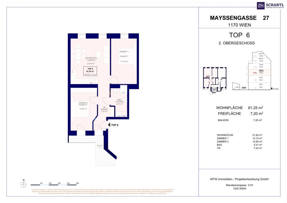 Wohnfläche: 61,25 m² + 3,09 m² Balkon