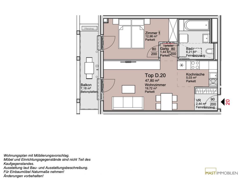 PROVISIONSFREI für den Käufer!Alle verfügbaren Wohnungen finden Sie auf unserer Homepage unter www.mast-immo.at. Um Ihre Suche zu erleichtern, steht Ihnen auf unserer Projektseite www.anderschanze25.at ein Wohnungsnavigator zur Verfügung, der Ihnen hilft, sich einen Überblick über die Lage der einzelnen Wohnungen innerhalb des Komplexes zu verschaffen.