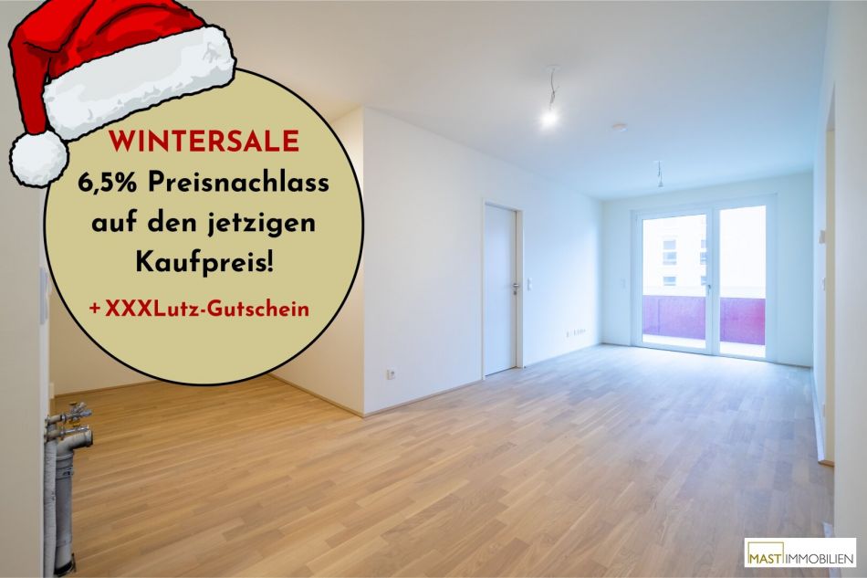 In der kalten Jahreszeit lassen wir die Preise schmelzen: Beim Kauf einer Eigentumswohnung in einem unserer Objekte in der Berresgasse ersparst du dir bis 31.3.2026 die Nebenkosten* und bekommst so jede Wohnung um 6,5% günstiger.