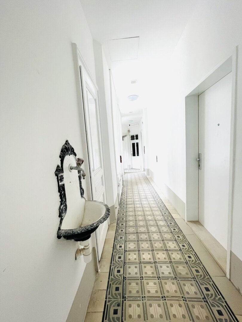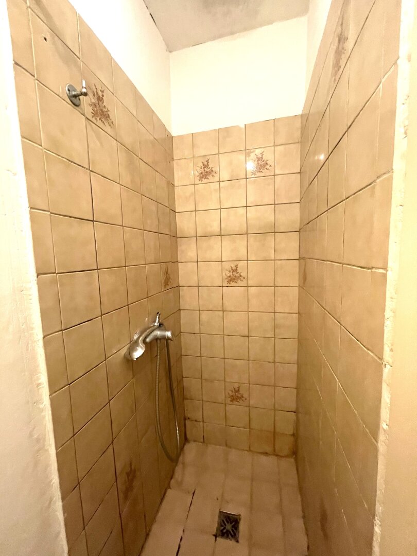 Die Wohnung besticht durch die hellen und hohen Räume (Raumhöhe 3,20-3,40 m) mit viel Gestaltungspotential für ein extra Schlafzimmer und ein großes Wohnzimmer mit integrierter Küche. Das Badezimmer ist mit Dusche, und Toilette ausgestattet. Das Waschbecken befindet sich derzeit daneben, könnte aber leicht ins Badezimmer integriert werden.