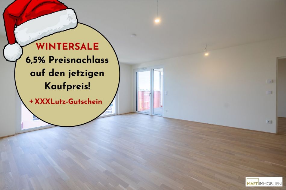 In der kalten Jahreszeit lassen wir die Preise schmelzen: Beim Kauf einer Eigentumswohnung in einem unserer Objekte in der Berresgasse ersparst du dir bis 31.3.2026 die Nebenkosten* und bekommst so jede Wohnung um 6,5% günstiger.