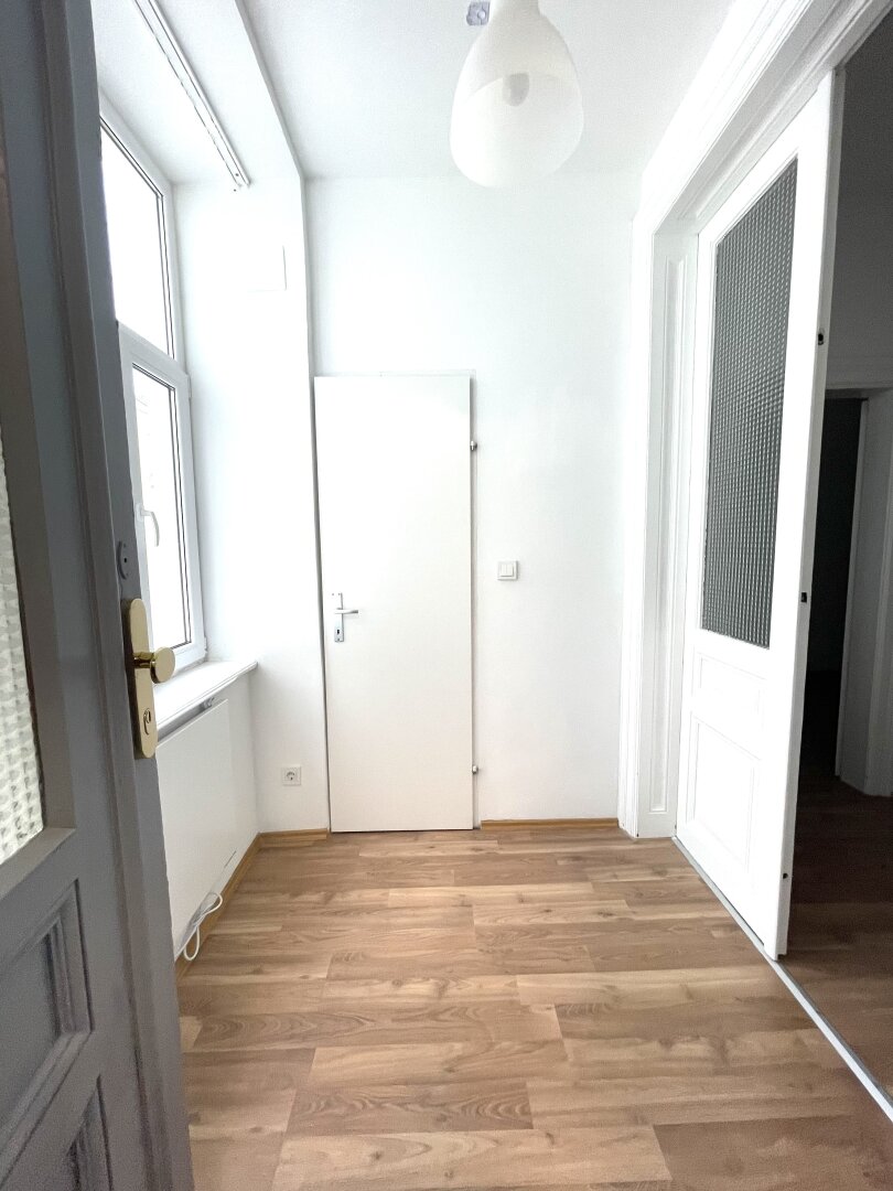 Sie betreten die Wohnung durch das helle Vorzimmer mit Fenster, von dem aus Sie direkt in die Küche und zum Duschbad gelangen. Danach betreten Sie von der Küche aus den Schrankraum welcher auch als Zimmer verwendet werden kann (Achtung - kein Fenster). Weiter geht es zu dem wunderschönen Ess-/Wohnzimmer.