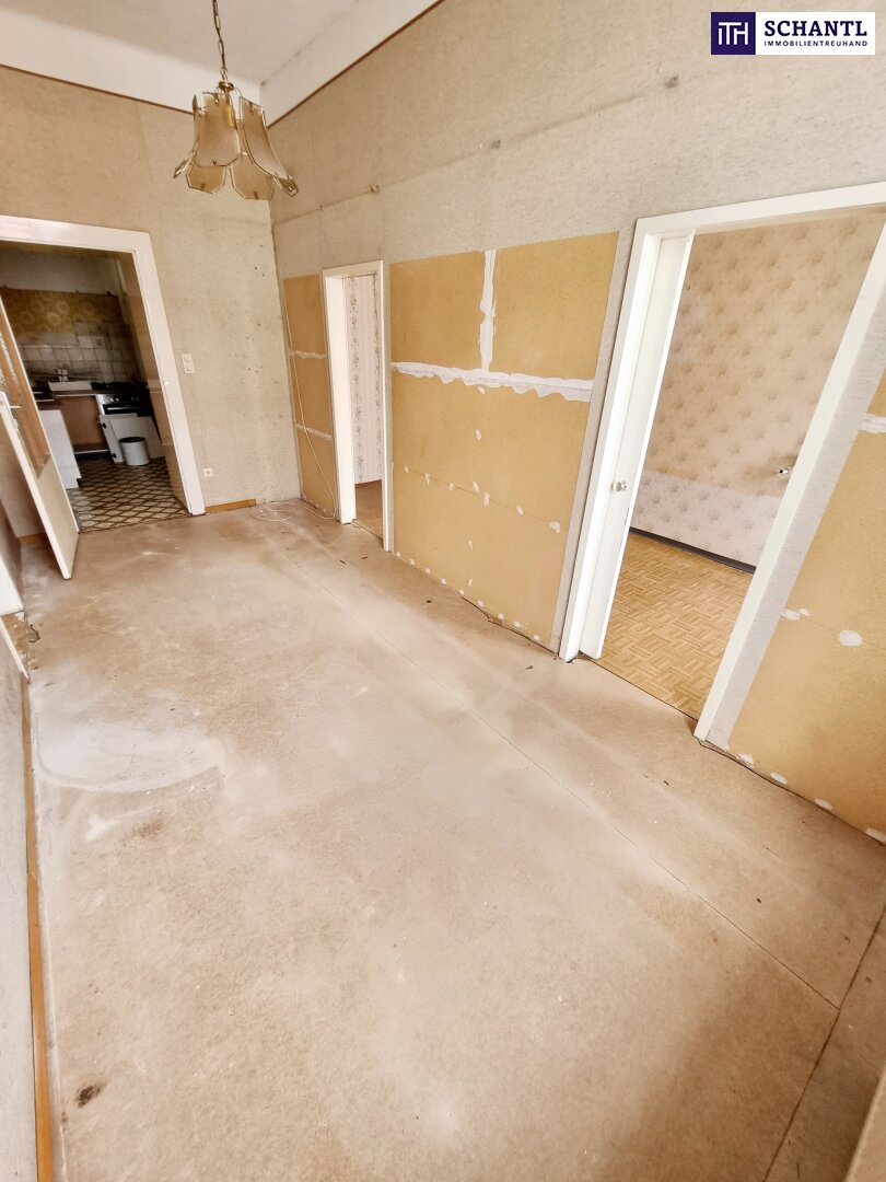 Ihre neue Wohnung ist aktuell sanierungsbedürftig und bietet Ihnen die Chance, Ihre Wünsche umzusetzen! Sie teilt sich in einen Vorraumbereich mit Platz für eine Garderobe, ein Badezimmer, ein WC, eine separate Küche mit Fenster und Platz für einen kleinen Esstisch, ein zentrales und geräumiges Wohn-Esszimmer, sowie 2 Schlafzimmer/Arbeitszimmer.