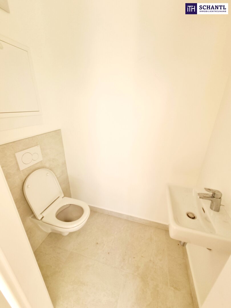 Hausfeeling pur! Ihr neues Townhouse wird Sie begeistern und teilt sich auf der 1.Ebene in einen geräumigen Vorraum mit viel Platz für eine Garderobe und Stauraum, ein separates Gäste-WC, einen praktischen Abstellraum sowie ein lichtdurchflutetes und großes Wohn-Esszimmer mit Zugang zur Terrasse bzw. dem charmanten Garten.