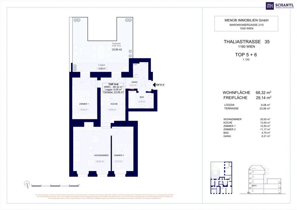 Wohnfläche 68 m2 + 23 m² Terrasse + 6 m² Loggia