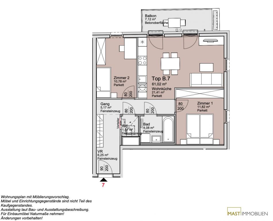 Die Wohnung befindet sich im 1. Liftstock und verfügt über 61,02 m² Wohnfläche + einen 7,12 m² großen Balkon.