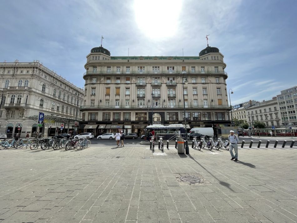Lage: direkt bei der Oper / Kärntner Straße. Die U-Bahn erreichen Sie in zwei Gehminuten, genauso wie die Straßenbahnen!