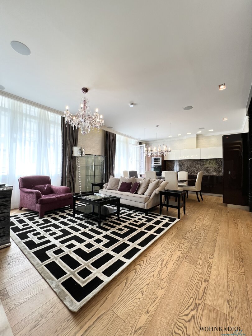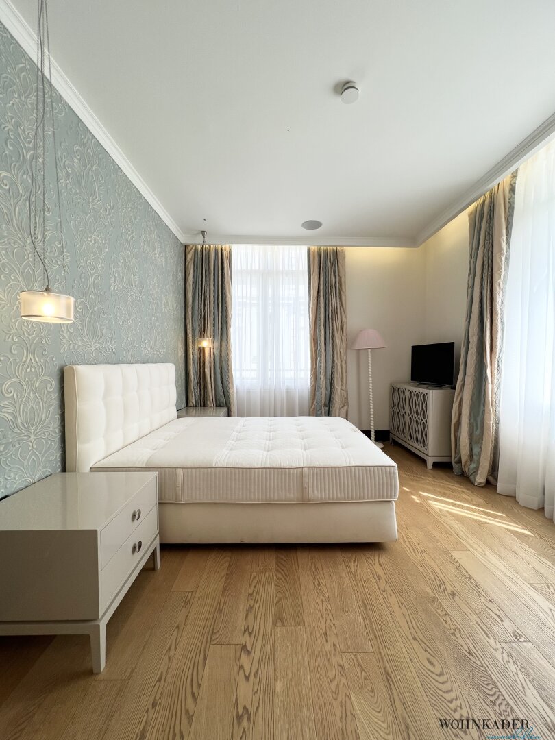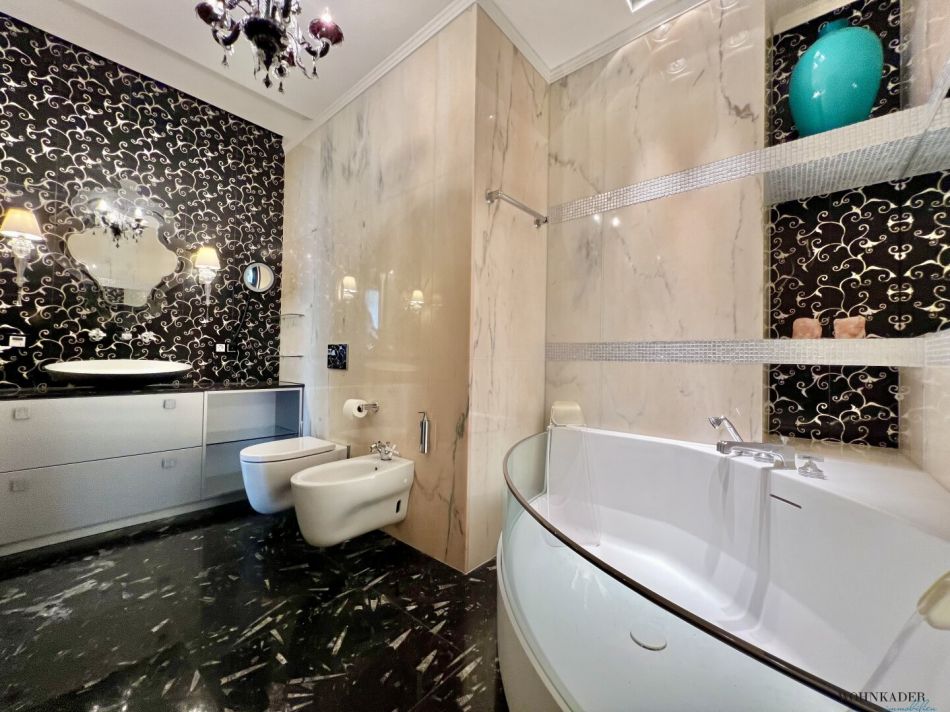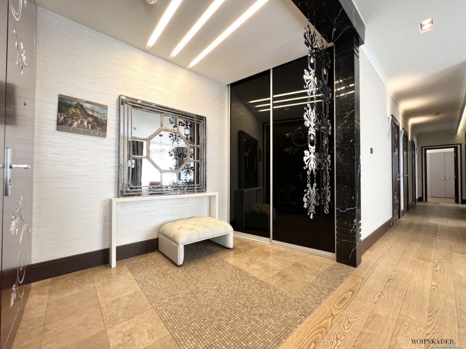 This high-class residence impresses with luxurious features and outstanding interior design. The entire apartment has been tastefully and extravagantly furnished with top-quality materials. The living area features real onyx and marble elements, as well as a striking marble fireplace. Exquisite Murano chandeliers illuminate the rooms, enhancing the opulent atmosphere.