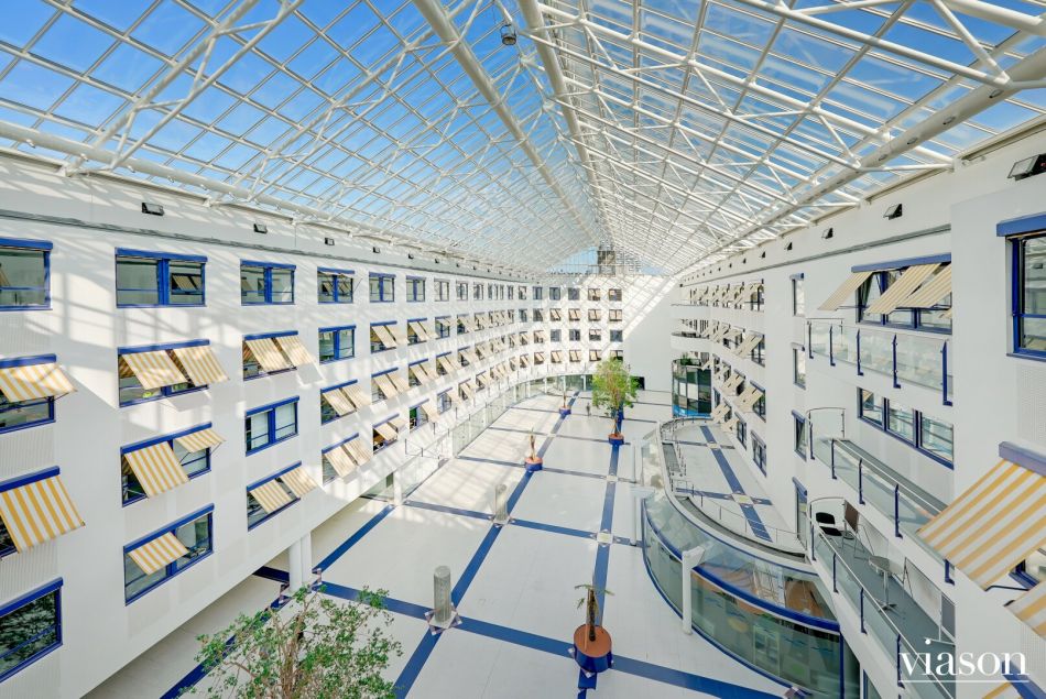 Das DONAU BUSINESS CENTER umfasst 6 Ebenen mit insgesamt ca. 22.000 m² Büro- und Geschäftsflächen und eine Tiefgarage im Haus.