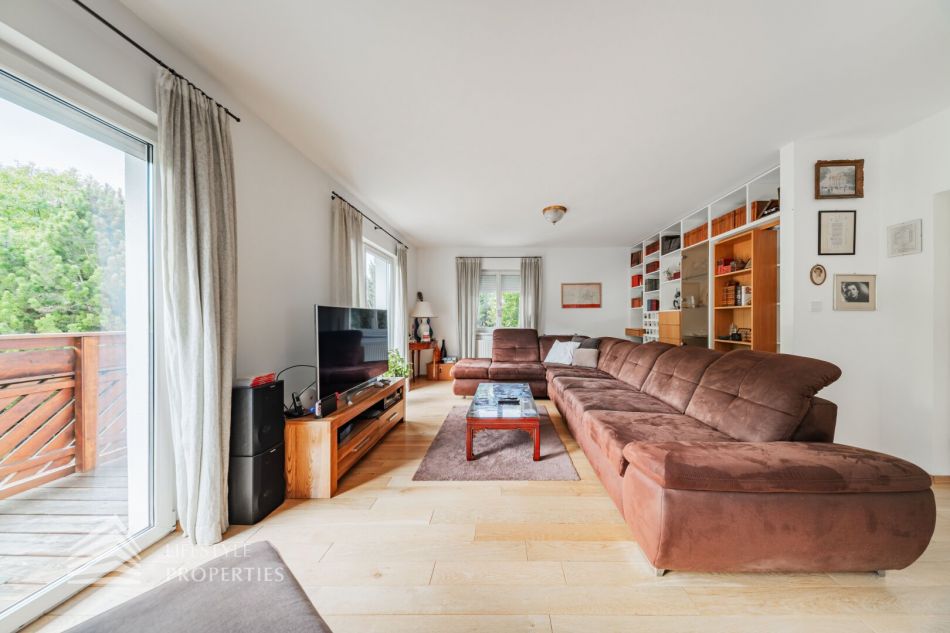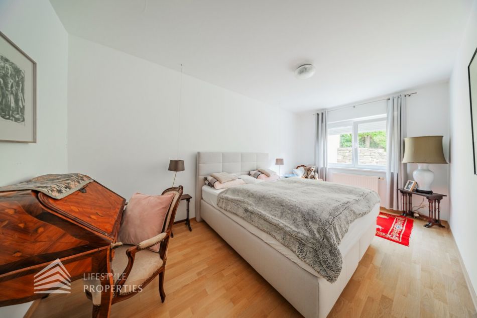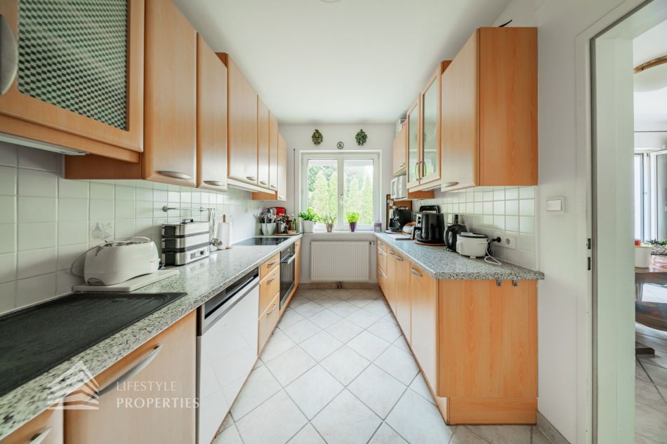 Das Anwesen bietet mehrere Terrassen und einen Balkon, verteilt auf Erd- und Obergeschoss, sowie insgesamt ca. 4 Stellplätze in der Garage. Die ruhige Lage am Waldrand des 14. Bezirks von Penzing garantiert absolute Privatsphäre und gleichzeitig kurze Wege in die Stadt. Einkaufsmöglichkeiten, Schulen, Kindergärten und Restaurants sind in wenigen Minuten erreichbar, während die Nähe zum Wienerwald vielfältige Freizeitmöglichkeiten eröffnet.