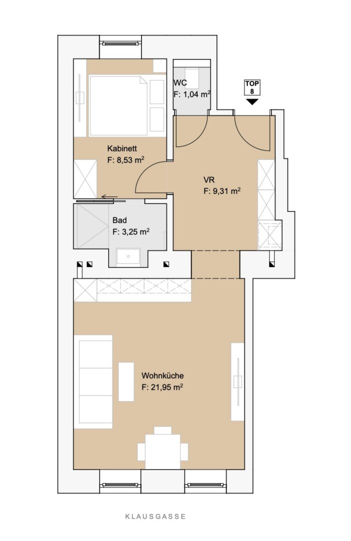 Zum Verkauf gelangt eine 2-Zimmer-Wohnung im 1. Stock eines gepflegten Wohnhauses, ohne Lift, mit ca. 44 m² Wohnfläche. Die Wohnung wurde umfangreich generalsaniert und besticht durch hochwertige Materialien und durchdachte Raumaufteilung. Sie ist zentral begehbar.