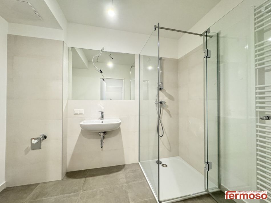 Das moderne Badezimmer ist mit einer Dusche ausgestattet und rundet den komfortablen Gesamteindruck ab. Kabel- und Satellitenanschluss sind vorhanden. Ein Personenaufzug sorgt für bequemen Zugang zur Wohnung, und bei Bedarf steht ein Tiefgaragenstellplatz zur Verfügung – ein großer Vorteil in Wien.